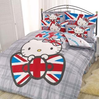 【享夢城堡】精梳棉雙人冬夏兩用被套6x7(HELLO KITTY 英倫風-灰.紅)
