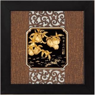 【開運陶源】純金金箔畫 -桃李滿門/福祿壽桃(小 古典中國風系列 24x24cm)