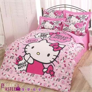 【享夢城堡】精梳棉雙人床包薄被套四件組(HELLO KITTY 嗨 你好嗎-粉)