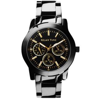 【Relax Time】時尚達人日曆顯示腕錶-金時標/IP黑/38mm(R0800-16-21B)