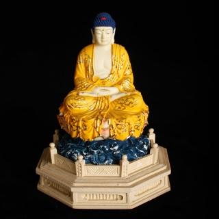 【MU LIFE 荒木雕塑藝品】高13公分 FRP日式淡彩金黃衣釋迦佛