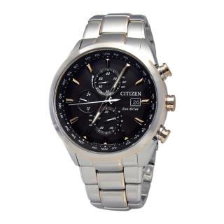 【CITIZEN】電波時計•搏命關頭Eco-Drive三環計時腕錶_深灰金刻(AT8016-51E)