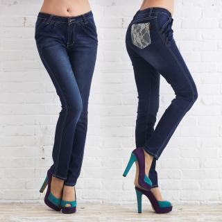 【RH】中腰深藍口袋蕾絲細身牛仔褲(修身顯瘦深藍色全尺碼S-4L)