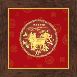 【開運陶源】純金 金箔畫 -麒麟呈祥(圓形系列 21 x21 cm)