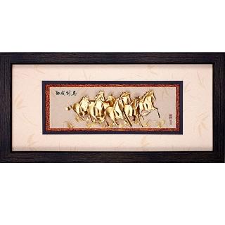 【開運陶源】純金 金箔畫 -馬到成功(雅金系列 124x60cm)