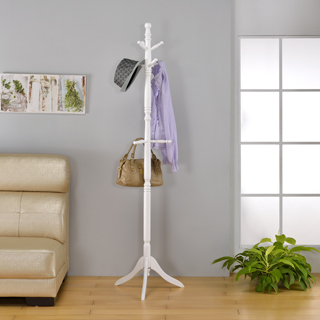 【ONE 生活】實木衣帽架(白*胡9隻掛鉤最實用)