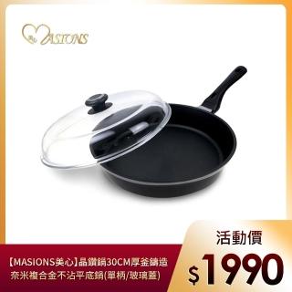 【美心 MASIONS】晶鑽鍋 30CM厚釜鑄造奈米複合金不沾平底鍋(單柄/玻璃蓋 台灣製造)