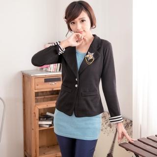 【衣心衣意中大尺碼】現貨-流行最前線 條紋袖口星星酷炫西裝外套(藍-黑A3180)
