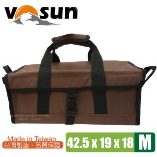【VOSUN】台灣製 耐磨硬式底板萬用工具袋.萬用收納袋(M號 咖啡)