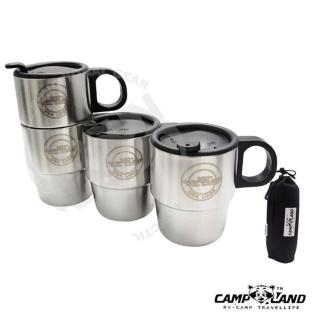 【CAMP-LAND】生活家四入304不鏽鋼組合式雙層斷熱咖啡杯組220cc.斷熱杯.保溫杯(260)