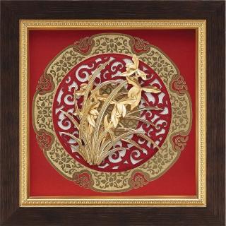 【開運陶源】純金 金箔畫 - 蘭花 蘭香怡德(圓形窗花系列 21x21cm)