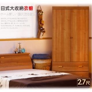 【久澤木柞】日式收納2.7尺開門二抽衣櫃(實木色/原木色)
