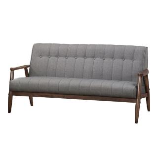 【AT HOME】美式簡約胡桃色實木布質三人沙發(提斯)