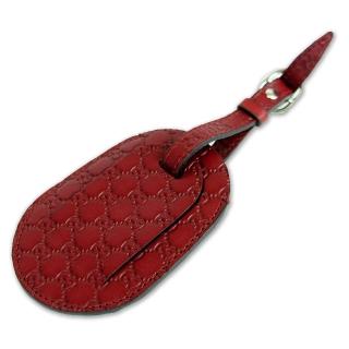 【GUCCI】經典緹花壓紋皮革行李吊牌/吊飾(紅)