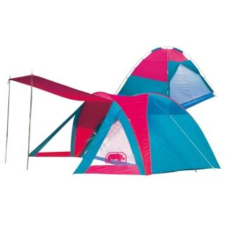 前庭附加2根直柱,可增加遮陽及炊事功能,雙門設計,全開式網門,外加防水尼龍門,使用玻璃纖維營柱,堅固耐用