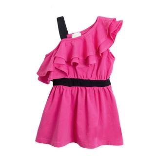 【baby童衣】任選 雜誌女孩款斜肩洋裝 42151(桃紅)