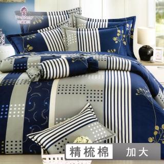 【巴麗維亞】精梳棉條紋六件式兩用被床罩組奢華藍采(加大)