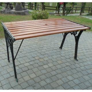 桌面木條以防腐防霉上漆處理,鑄鐵堅實穩固,適合開放式庭園、社區咖啡館