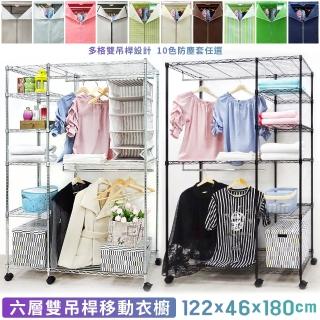 【yo-life】六層雙吊桿移動大防塵衣櫥組-贈尼龍輪-贈防塵套(十色任選122x46x180cm)