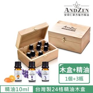 【ANDZEN】天然草本精油10mlx3瓶+台灣製精油木盒(可裝24瓶)