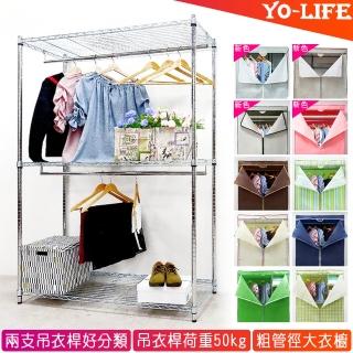 【yo-life】大型雙吊桿大衣櫥組-贈防塵套(122x46x180cm)