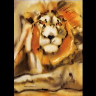 【劉其偉藝術典藏】親筆簽名限量發行石版畫(保育動物系列--獅子)