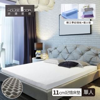 【House Door 好適家居】天絲纖維布套11cm厚竹炭波浪記憶床墊(單人3尺 贈工學枕+個人毯)