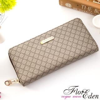 【DF Flor Eden】雅典娜牛皮緹花紋單拉鍊長夾-共2色