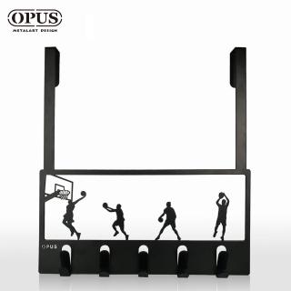 【OPUS東齊金工】歐式鐵藝門後掛勾/免釘廚房掛鉤/無痕掛衣架(HO-ba04B 灌籃高手_經典黑)