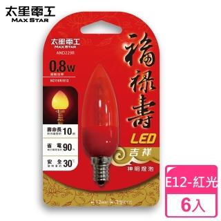 【太星電工】0.8W福祿壽LED吉祥神明燈泡-紅光6入(E12)