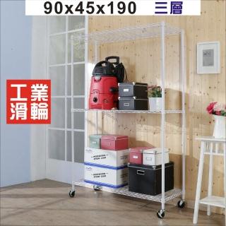 【BuyJM】白烤漆90x45x190cm鎖接管三層架附工業輪/波浪架