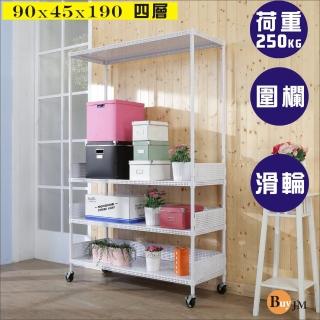 【BuyJM】洞洞板90x45x190cm耐重四層附輪置物架+3組圍欄