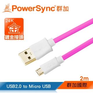 【群加 PowerSync】Micro USB 傳輸充電線 安卓手機平板用/粉紅色/2M(USB2-GFMIB22)