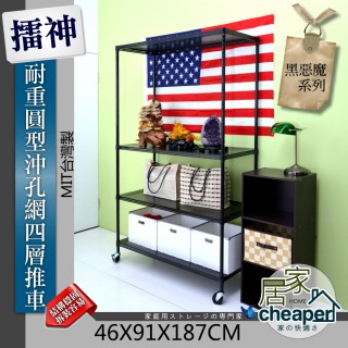 【居家cheaper】擂神黑46X91X187CM耐重圓型沖孔網四層置物推車(時尚黑)