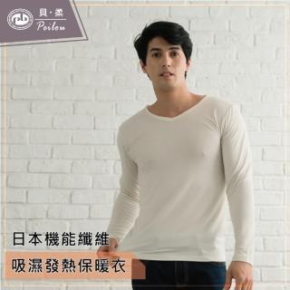 【貝柔】機能吸濕發熱男保暖衣(V領-米白)