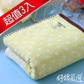 【好棉嚴選】台灣製 卡洛兔圓點款 100%純棉全棉毛巾 吸水浴巾面巾運動巾 3入組(黃綠)