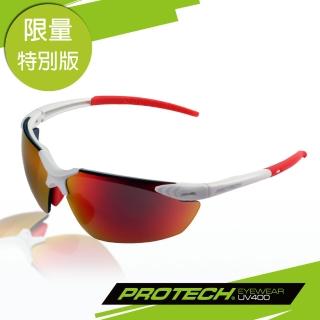 【PROTECH】ADP006專業級運動太陽炫彩眼鏡(平光白框+炫彩紅)