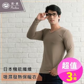 【貝柔】機能吸濕發熱男保暖衣(V領-咖啡-3入)