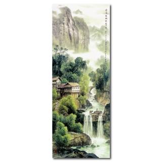 【24mama 掛畫】單聯式 小雅家飾 山水彩墨無框畫 30x80cm(染成綠幽暗覺香)