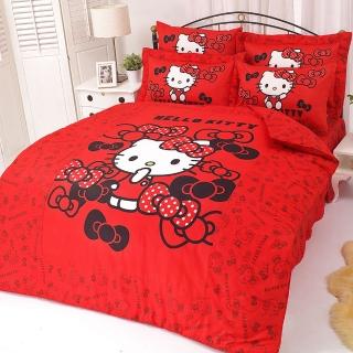 【享夢城堡】精梳棉雙人床包薄被套四件組(HELLO KITTY 我的小可愛-紅)