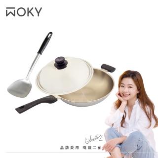 【WOKY】玫瑰金專利不鏽鋼34CM萬用炒鍋(送OK智慧感溫鍋鏟)