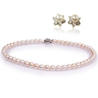 【小樂珠寶】熱賣冠軍款-超美3A天然珍珠套組(二件式套組項鍊耳環耳針式款)