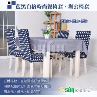 【Osun】歐桑生活 典雅時尚餐椅套、辦公椅子套-藍黑白格子(2入/包)