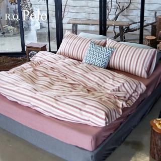 【R.Q.POLO】水洗棉 條紋 四件式被套床包組 粉條紋(雙人)