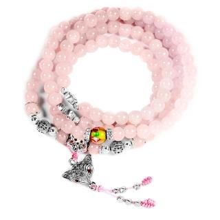 【A1寶石】魅力小狐仙-銀飾粉水晶108念珠-日本限定款-增強魅力、招財開運