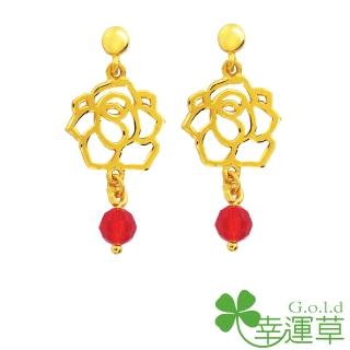 【幸運草金飾】玫瑰香頌 水晶+黃金 耳環(金重 0.66錢±0.07)