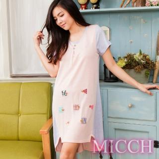 【MICCH】修長視覺 拼貼趣味風洋裝 居家休閒裙