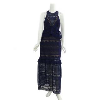 【SELF-PORTRAIT】削肩淚滴狀蕾絲長洋裝(籃紫色)