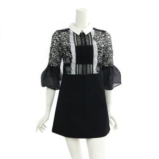【SELF-PORTRAIT】蕾絲7分袖短洋裝(黑白)