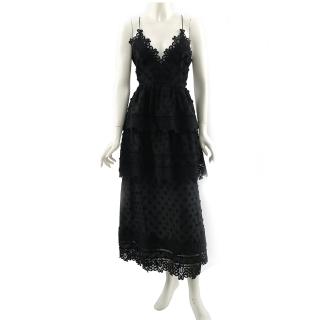 【SELF-PORTRAIT】小花細帶蕾絲層次長洋裝(黑色)